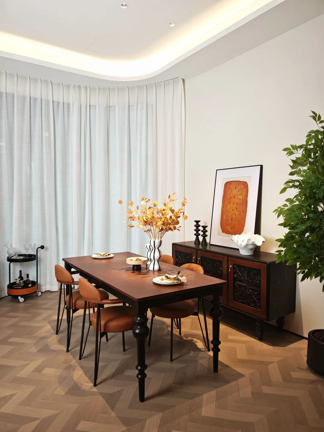 在這里,融合著包豪斯現(xiàn)代主義,每一處銜接都經(jīng)過深思熟慮,層層遞進(jìn),展現(xiàn)出多維的視覺享受,精品白蠟?zāi)静馁|(zhì)與經(jīng)典色彩精妙絕倫的搭配,奠定著整個(gè)家居空間的浪漫復(fù)古基調(diào),彰顯著我們對創(chuàng)新設(shè)計(jì)和卓越品質(zhì)的執(zhí)著追求。